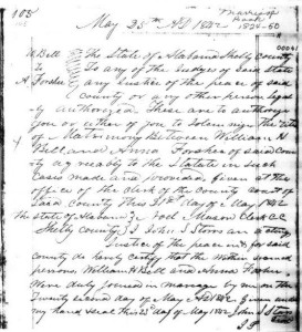 Marriage Certificate for William H. Bell & Ann E. Foshee